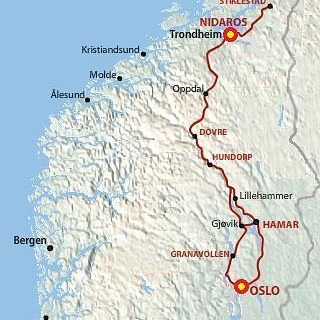 Het Olavspad in Noorwegen is 650 km lang en loopt van Olso naar Trondheim. Het pad loopt langs Noorwegens grootste meer Mjøsa, via het prachtige Gudbrandsdal, over de betoverende hoogtevlakte Dovrfjell naar het Trondheimfjord. Mijn rugzak is gepakt, mijn voeten gesmeerd en met een overdosis aan goede zin ben ik er klaar voor.