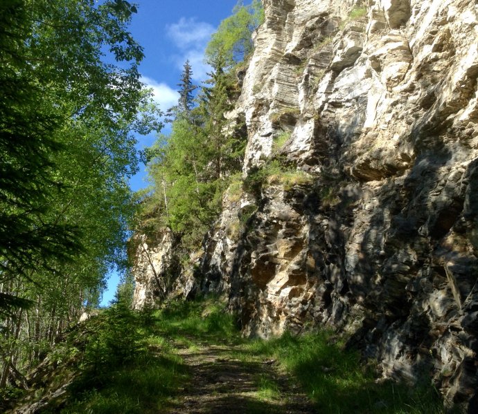 Wat is het toch een schitterde mooie omgeving en wat is het pittig. Nondeju nog eens aan toe. Maar we gaan niet klagen, daar is ons pad tot nu toe veel te mooi voor. We zien herten in de dalen op de weiden. Maar ook voor onze neus. Maar ons eenmaal gezien te hebben, schieten ze als schimmen weg. En dan te bedenken dat de herten biej os op ut lager dich nog netjes gooie daag knikken. Als ik dit tegen Runa vertel zegt zij: really! Ik loop lachend verder.