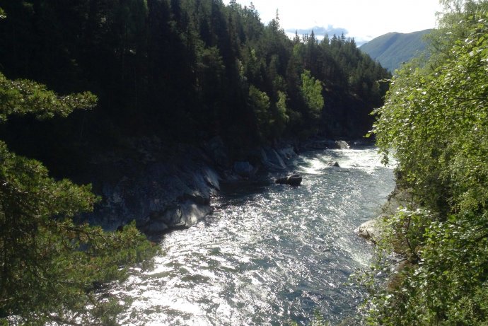 Als ik mijn ogen uitwrijf en nog eens uitwrijf vanmorgen, weet ik niet wat ik zie. Een staal blauwe hemel opent voor mij de dag. Dat belooft wat. Mijn regenbroek en jack hangen nog aan de ouwe potkachel die in mijn slaapkamer staat. Snel in de rugzak ermee. Kan zo maar een uitnodiging voor regen zijn. Langzaam wen ik ook aan mijn nieuwe rugzak. Ich weit tenminste weer alles te vinje. Ik ga me eerst lekker opfrissen en dan ontbijten in het huis van Christian. Als ik binnen kom schrikt Christian. “ oh Ger, I forgot youe glutenfree bread” en weg is hij. Zijn zoon vertelt me dat drie minuten rijden verderop een supermarkt ligt. Lachend komt hij binnen. Look what I have for you. Eine vers gebakken glute vrieje mik. Het ontbijt is heel goed. We komen niks te kort. Miss America haet zich intusse auch binne gesjraveld. En wat ik gisteren al dacht, wordt nu bevestigd. Vandaag is het "Just the two of us". Goed ontbeten gaan we op pad. Christian snijdt het brood in sneetjes en ik moet het maar meenemen, zegt hij. Dan nemen we nog afscheid van Thomas die nog niet weet waar hij naar toe loopt vandaag. Wel heeft hij vanmorgen een pakket gemaakt van hetgeen hij graag terug wil sturen naar Zwitserland. Hij droeg een rugzak van 18 kg!! Van Hanne nemen we afscheid. En als laatste van Christian. Wat een toffe kerel is hij. De zon staat hoog aan de hemel, wat willen we nog meer en weg zijn we. Ongerwaeg zegt Runa tegen mij: Ger we zijn nu samen op weg. Ik weet zeker dat het een stressloze dag zal worden. Ik vertel haar dat ik ook deze route een beetje heb aangepast, omdat onze slaapplek in het Generall hotel op Helgelandsmoen is. Dit was vroeger een militaire basis. Bewust heb ik voor een korte route gekozen, iets wat Runa erg op prijs stelt. Jammer voor vandaag dat de route veel over asfalt gaat. Maar we krijgen heel wat mooie plaatjes voorgeschoteld.