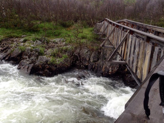 Dan begint het, vijftien km alleen maar omhoog. Met af en toe een stukje vals plat gaan we naar 650 meter hoogte. Rondom ons heen zo ver als we kunnen kijken, bossen, heuvels en ver weg bergen met sneeuw op. Regelmatig stoppen we. En det is auch nuëdig auch. Blij zijn we als we het hoogste punt bereiken. Toch wonen hier mensen. Regelmatig zien we weer zo'n prachtig huis staan. Een postbode stopt voor ons. Hiej bringe ze de pos neet op de fiets rondj. :Where you going, to Trondheim? Yes daar gaan we heen. We kletsen nog even en met een God Tur neemt hij afscheid. Gestaag dalend bereiken we de afslag die ons naar Åstjern hyttentun voert. Anderhalve km staat op de paal en dan zijn we er. Het is maar een geitenpaadje en sterk dalend. Tegen Runa zeg ik: dit moeten we morgenvroeg ook weer op. Not a problem. Oké.