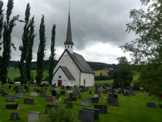 Als eerste komen we bij Bønsnes kirke. Hoog gelegen met een prachtig uitzicht over de Tyriffjorden. Hier vinden we ook een stempel voor in de credential. Helaas is het kerkje gesloten. Op een bankje achter de kerk genieten we van het mooie uitzicht. Ook komt Hanne weer ter sprake. We hebben het over onze mailcontacten. Runa vertelt me dat het haar opviel dat ze overal wel wat op had aan te merken, zij het niet met commentaar dan wel door but, but, but. Als we verder gaan, lopen we door een streek waar ze bezig zijn heel veel soorten sla te steken. Ook venkel en knolselderij staat hier volop. Ook veel Poolse arbeiders zien we op de velden. Met links van ons de Tyriffjorden lopen we over een glooiende weg richting Hole kirke. Een kerkje uit begin twaalfhonderd met een mooie begraafplaats er voor. Ongerwaeg vertelt Runa mij dat ze blij was dat ik ook op haar bericht op het forum van de Olavsweg gereageerd had. Zij voelde zich bij mij veel safer dan bij Hanne. Ik vertel haar dat ik gisteren ook heel blij was dat ze toch duidelijk voor mij koos na al de strubbelingen. Zelf denk ik, mits er geen gekke dingen gebeuren (blessures, ziekte etc.), we samen heel ver zullen komen. Langzamerhand naderen we onze slaapplek en om twee uur in de middag checken we in. Deze plaats had ik thuis al via booking.com geregeld. Samen drinken we een pilsje (jao mer eine, want veur det geld hub ich der thoes ein ganze krat veur) op deze mooie dag.