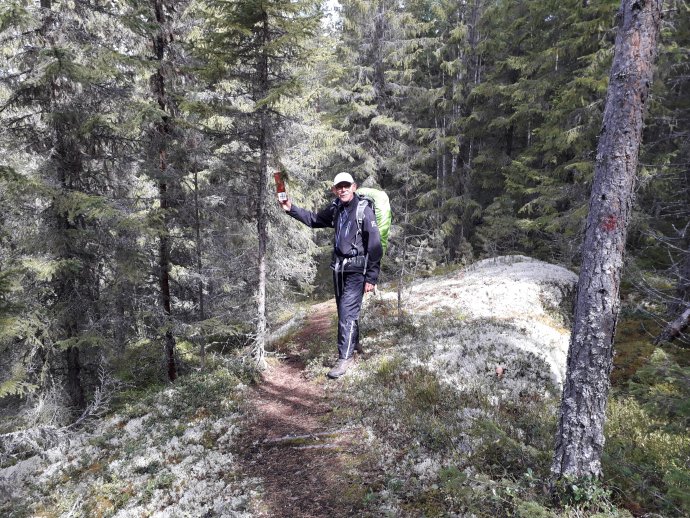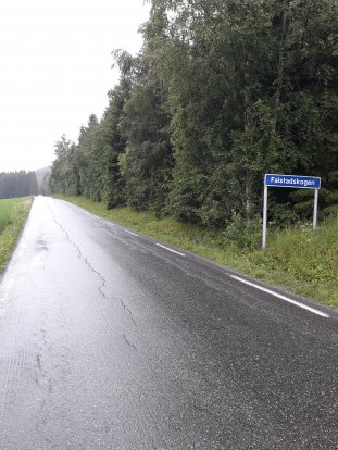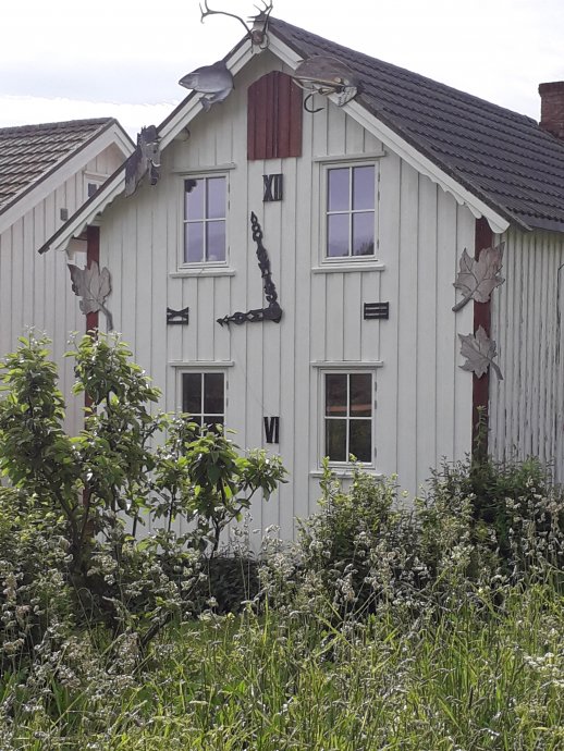 Onze weg vandaag gaat de hele dag over glooiende paden en wegen. Een enkele keer gaat het pittig omhoog. Tegen half twee komen we aan in Gisselåsen. Hier verwelkomen Tom en Sigrid alle pelgrims die langs hun huis komen. Hij staat ons al op te wachten en heeft de koffie al klaar. Zelfs glutenvrije crackers heeft hij in huis. Wat een aardige mensen. Hij houdt er als hobby op na om van alle pelgrims een foto te maken, die hij in de winterperiode laat afdrukken en in een fotoboek zet. Tevens noteert hij land van afkomst, man of vrouw, lopend, fietsend of te paard, met of zonder tent, waar naartoe en noem maar op. Als aandenken krijgen we van hem een mooie pen annex zo'n ding voor op een tablet te tikken. Nadat hij een foto van ons heeft genomen, bedanken wij Tom en Sigrid voor alles en gaan verder. Trouwens, van enige donatie willen ze niks weten. Al lopend door de bossen gaat het richting Matfors. Het zijn 8 km en dan nog eens 7 km naar Solgården, onze overnachtingsplek. In Matfors doen we nog wat inkopen in een grote supermarkt. Ik koop o.a. glutenvrij brood en bier!! Als we de winkel uitkomen en buiten onze spullen in de rugzak aan 't proppen zijn, begint het te regenen. De regenhoezen gaan over onze rugzakken en de paraplu's komen er uit. Gelukkig stelt het niet veel voor. We raken vermoeid. Zo’n eerste dag is toch altijd weer wennen. De 7 km naar onze slaapplek trekken zich erg lang. Blij zijn we dan ook om tegen zessen onze rugzakken van de poekel te kunnen halen. Hartelijk worden we welkom geheten door Maybritt en ze neemt ons mee naar ons eigen huisje. Lekker warm is het binnen en het ziet er gezellig en netjes uit. En dan komen de vaste dagelijkse rituelen weer. Iers oetruste met een pilske. Den onger de doesj. Wat nuedig is aan kleijer wasse. En den kaoke, eate en aafwasse. En as der den nog puf euver is, ut versjlaag sjrieve. Nou dat is allemaal gedaan en het zal niet lang meer duren voor we beiden onder de wol gaan. Oh ja, jammer dat we al twee dagen geen Wi-Fi hebben op onze slaapplaatsen. Maar het is niet anders. Sjlaop ze.