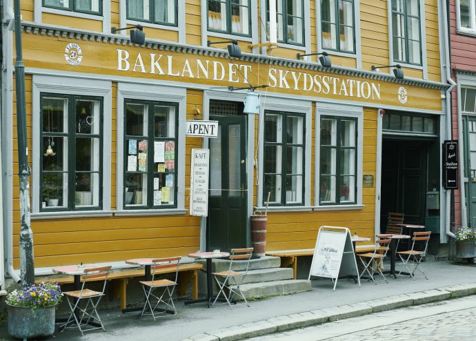 Om vier uur zijn we terug in ons hotel. Als we ons hebben opgefrist is het tijd om ergens te gaan eten. Ik stel Rùna voor om naar het Bakklandet Skydsstation te gaan. Dit ligt in de oude wijk Bakklandet aan de andere kant van de rivier de Nidelva. Uit verhalen welke ik heb gelezen moet dit een bijzondere eetgelegenheid zijn. Om half zes lopen we erheen en hebben geluk dat er nog een tafeltje vrij is. Het is een restaurantje wat erg kleine kamertjes heeft met erg kleine tafeltjes en stoelen. Maar wel heel erg leuk. Hoe ze het allemaal klaar spelen hier, ik weet het niet. Je kunt kiezen om van een soort buffetje te eten of van de menukaart. Deze bevat 6 gerechten waarvan er twee glutenvrij zijn volgens de kaart. Ik bestel zalm met aardappels en spinazie welke gebakken is in uienringen. Rùna besteld kip met rijst in een soort soep. Het is lekker maar Rùna vraagt zich af waar de kip is. Only four small parts chicken I have in my soup. Ik zeg tegen haar: Ooh that's not so much. I think the chicken fly's over you're soup Rùna. Hierna lopen we nog wat door het oude gedeelte met zijn huizen op palen. Terug in het hotel informeren we naar de Flybus die we hier steeds zien rijden. Er wordt ons verteld dat we hiermee naar het vliegveld kunnen. De halte plaats is niet ver weg. Goed om te weten. Morgen zullen we gaan kijken waar dit ergens is. Om half tien duiken we ons bed in. Sjlaop ze.