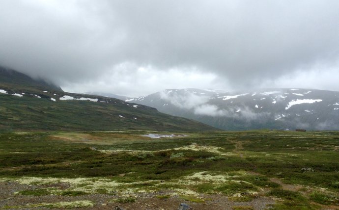 Runa en ik ondervonden onderweg hoe zwaar het was. Steeds veel venijnig klimwerk en dat vanaf dag één. Maar de natuur en de weidse vergezichten maakten veel goed. De markering van de Olavsweg is goed. Al waren er op cruciale punten waar het beter kon. Maar dan had ik nog altijd “Mary” mijn G.P.S. die zorgde dat we op het goede pad bleven. Toch waren er ook stukken bij, waar ik mij afvroeg, ben ik nu op een pelgrimsweg, of ben ik bezig met een survivaltocht. Zo zwaar en deels gevaarlijk was het soms. Onze dagen op en over de Dovre fjell, grandioos. Of de zon nu scheen, of het regende of sneeuwde en steenkoud was, het maakte ons niks uit. Hier boven lopen was het absolute hoogtepunt. De dagen op de fjell maakten onze tocht tot een ware pelgrimstocht. Alle ingrediënten hiervoor waren aanwezig. Mijn gedachten gingen onder het lopen vaak terug in de eeuwen. Wat moeten de pelgrims in die tijd hebben afgezien. Zij hadden geen dure wandelschoenen of een rugzak die als gegoten op je rug plakte. Laat staan goede kleding of een warm onderkomen.